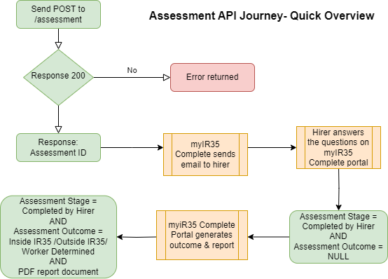 myIR35 Complete Assessment API provides integration abilities for recruiter led assessments where an assessment request can be created by providing recruiter, hirer, and worker details.